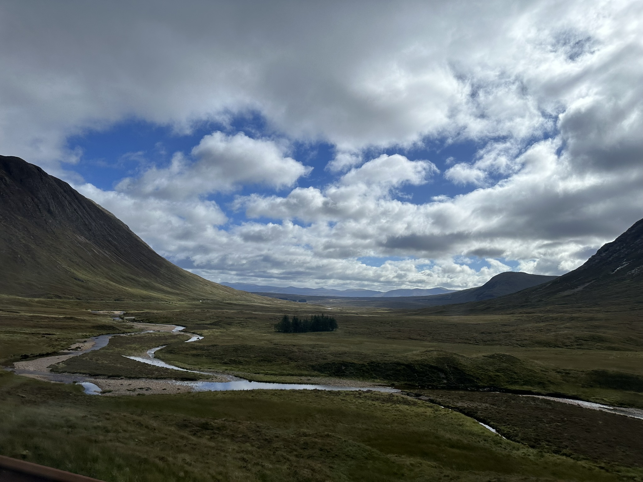 Dann war es so weit: Unser Bus kam, wir luden unsere Rucksäcke ein und ließen uns für die nächsten drei Stunden gemütlich durch die schottische Landschaft chauffieren. Lustigerweise fuhren wir fast exakt die gleiche Strecke zurück, die wir zuvor erwandert hatten – diesmal eben im Sitzen. Mit jedem Loch und jedem Berg, den wir wiedererkannten, kamen all die schönen Erinnerungen hoch. Kurz vor Glasgow gönnten wir uns dann auch ein kleines Nickerchen.