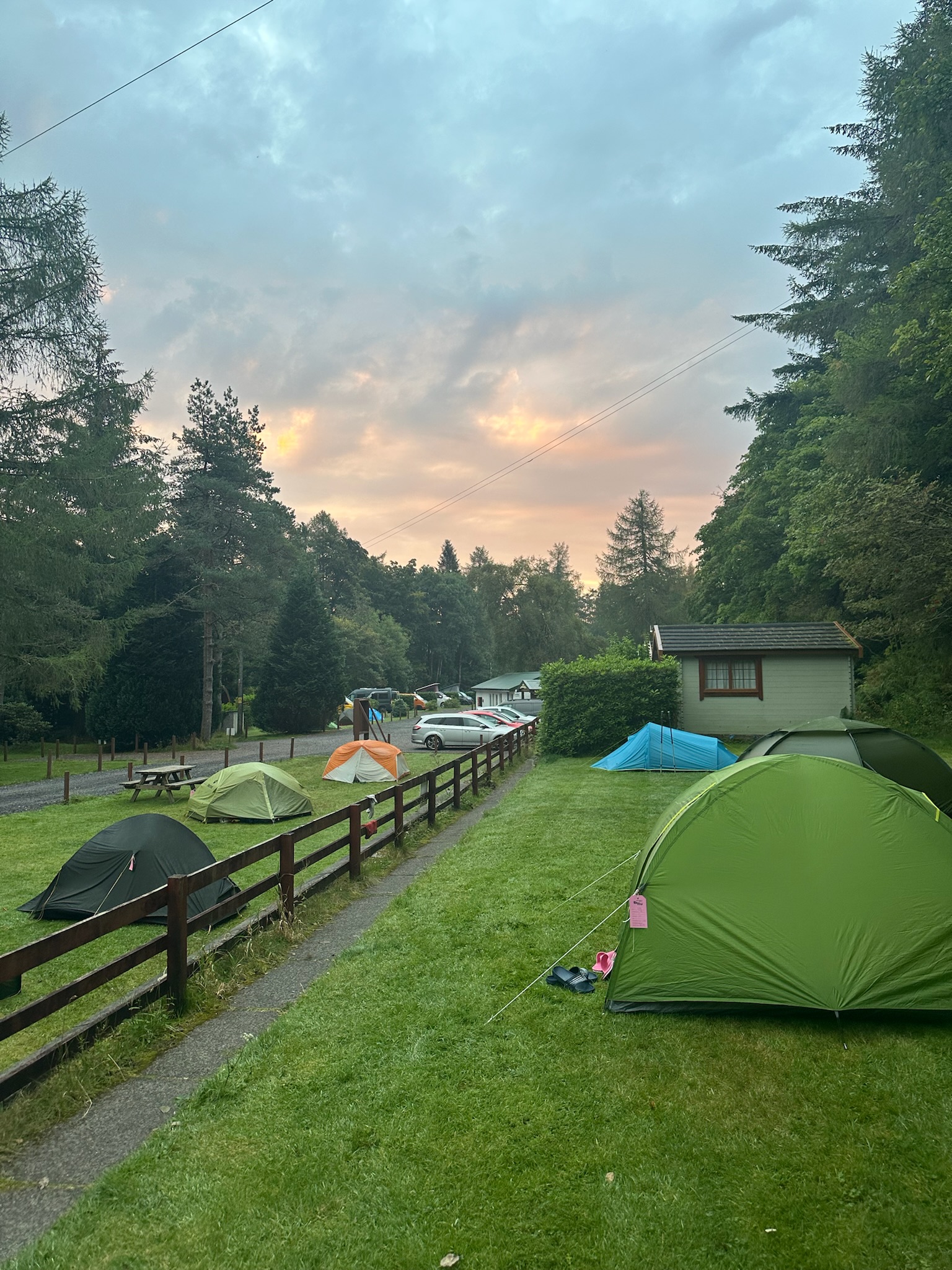 Da das Inveroran Hotel schon ein Jahr im Voraus ausgebucht war und es weit und breit keinen Campingplatz gab, blieb uns nichts anderes übrig, als wild zu campen. Online hatten wir gelesen, dass man nahe des Parkplatzes an der Victoria Bridge gut campen kann. Dort fanden wir auch einen recht ebenen Platz in einem kleinen Wäldchen voller Nadelbäume.