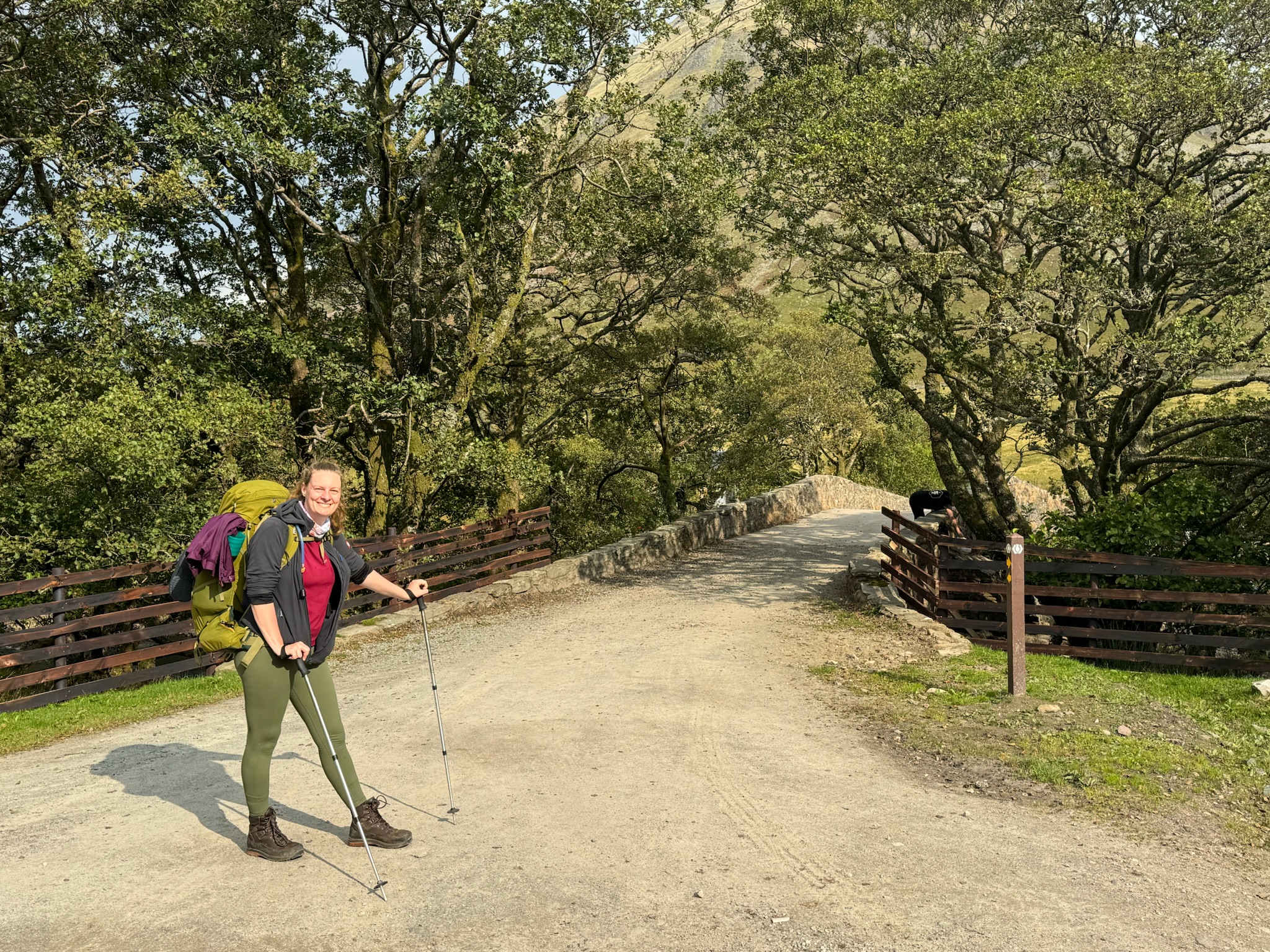 Unser erstes Ziel, die Bridge of Orchy, erreichten wir gefühlt im Handumdrehen. An einem Hotel (ja, das „Dorf“ besteht gefühlt wirklich nur aus diesem Hotel und vielleicht 20 weiteren Gebäuden – aber wartet ab, es wird noch „dörflicher“ ) füllten wir unsere Wasserflaschen auf und holten uns unseren West Highland Way-Stempel ab (dazu erzähle ich später mehr). Wir genossen die Sonne auf der Brücke und machten ein paar Fotos, bevor es mit dem nächsten großen Anstieg losging. Ein Fahrradwanderer grinste uns an und fragte, ob wir für den 500-Fuß-Anstieg bereit seien. Klar doch, nach den letzten Tagen sind wir ja fast schon Wanderprofis! 😎