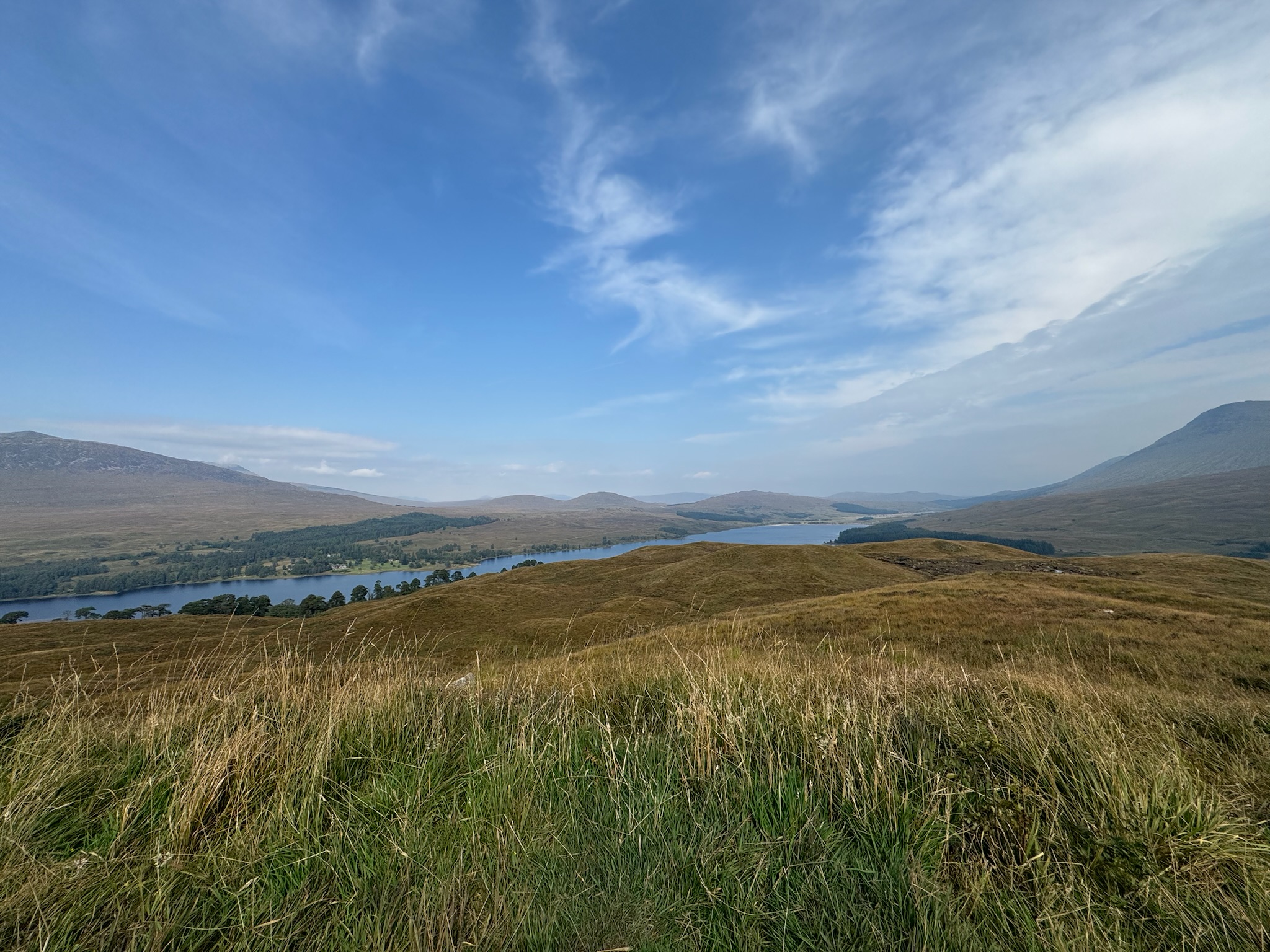 Oben angekommen, wurden wir mit einem atemberaubenden Blick auf das Loch Tulla belohnt. Die Sonne zeigte sich endlich wieder, und wir genossen unser Mittagessen mit grandiosem Ausblick. Hier trafen wir auch m auf „Mr. You Name It, I Did It“ aus unserem letzten Bericht – der Typ, der einfach schon alles erlebt hat.