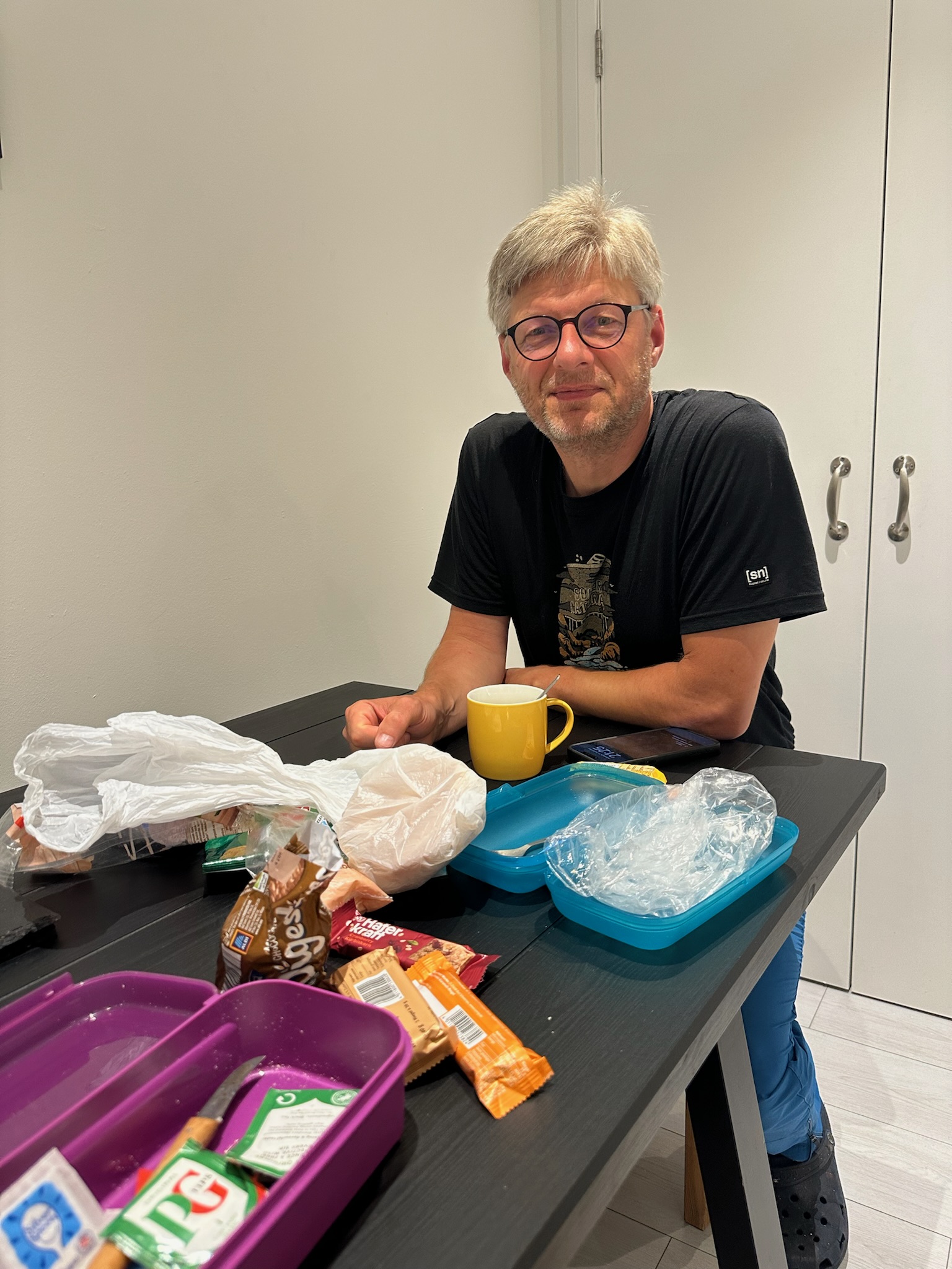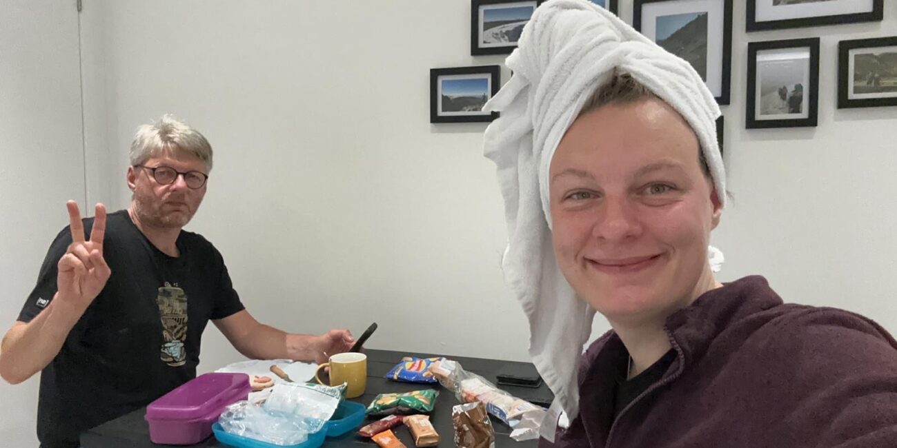 Eigentlich wollten wir nach der Dusche noch in die Stadt zum Essen, aber unsere müden Körper hatten andere Pläne. Stattdessen plünderten wir unsere Rucksäcke und machten uns in der Bunkhouse-Küche über unsere Vorräte her – es fühlte sich an wie ein Festmahl!