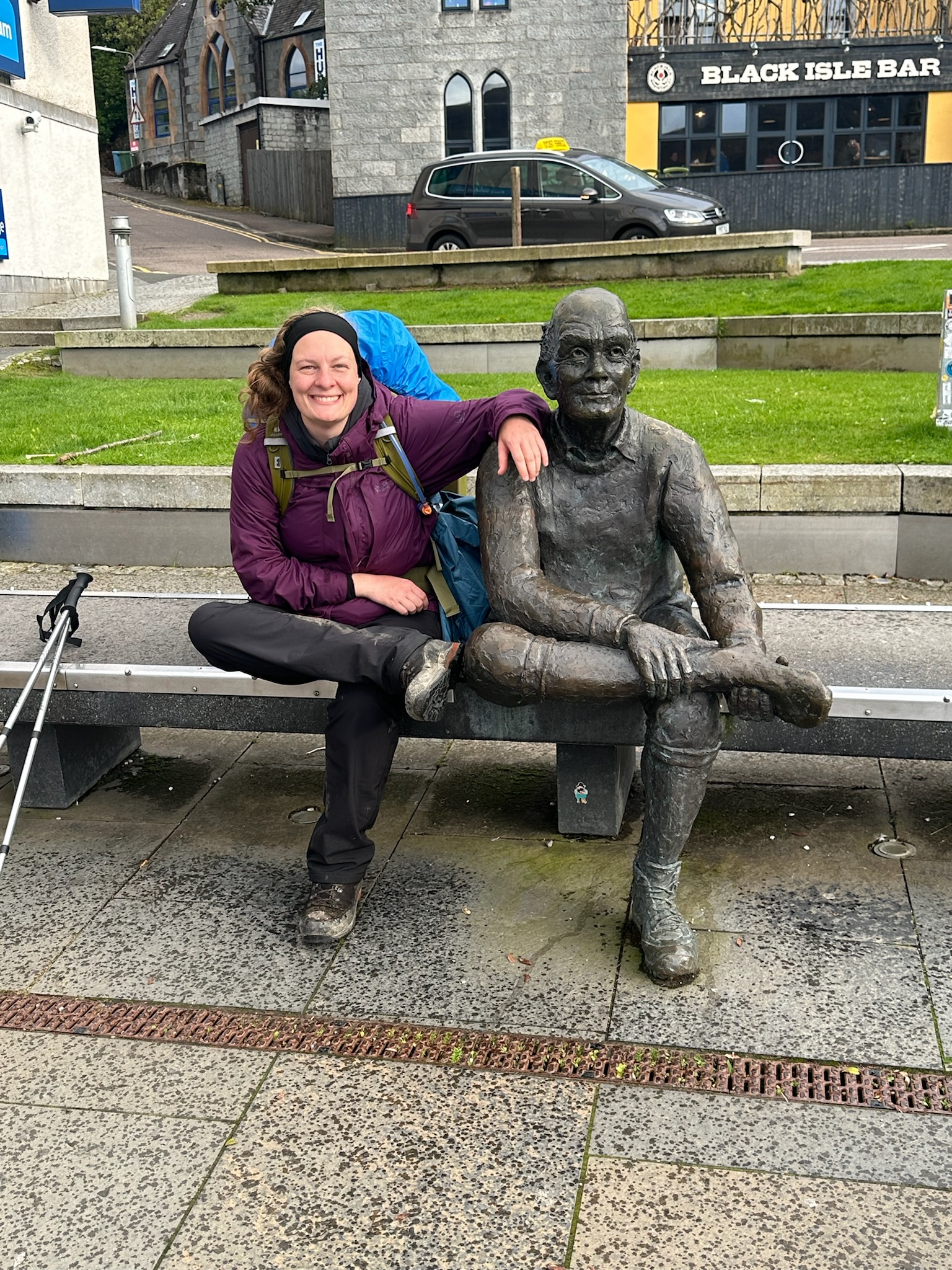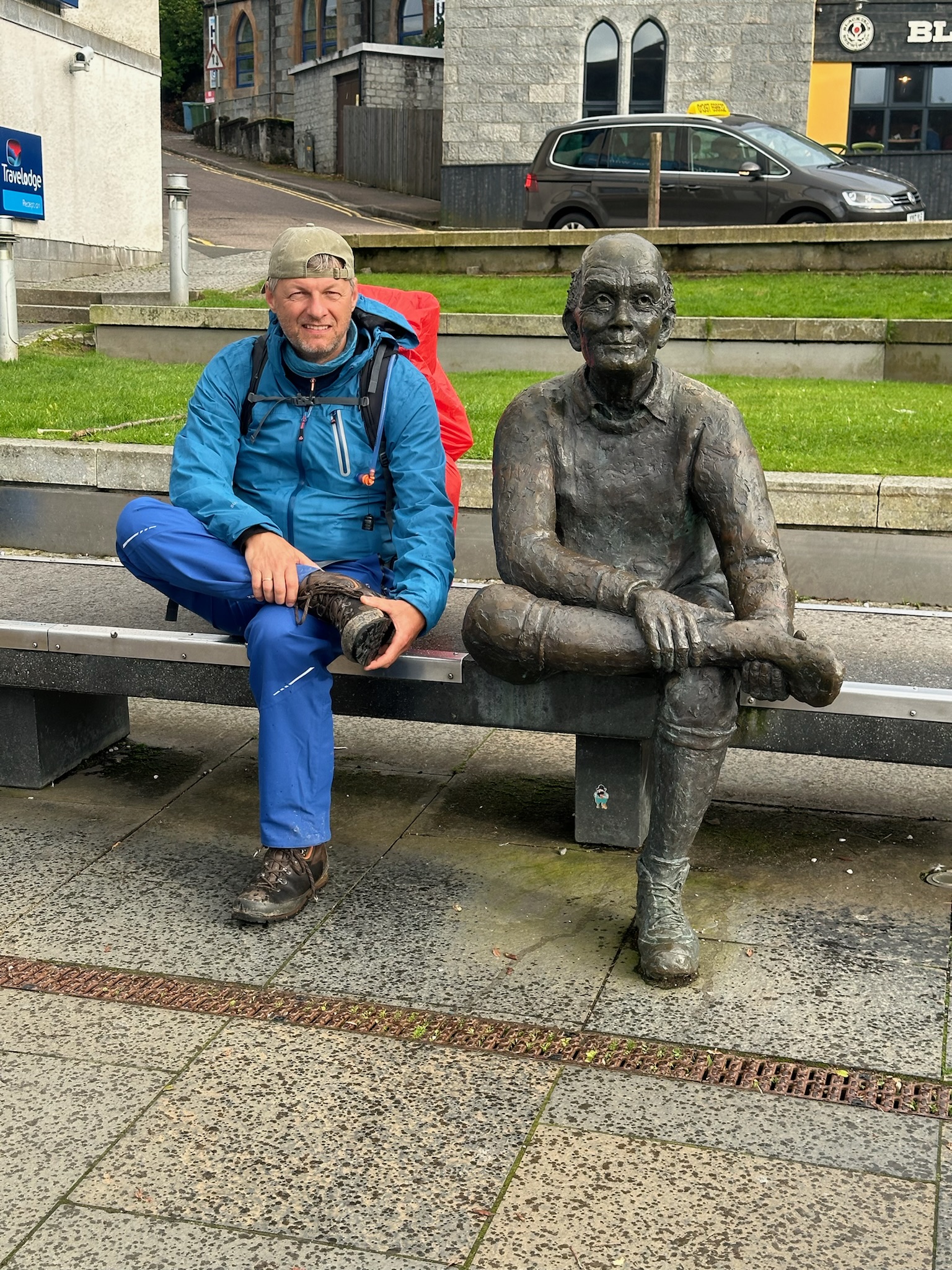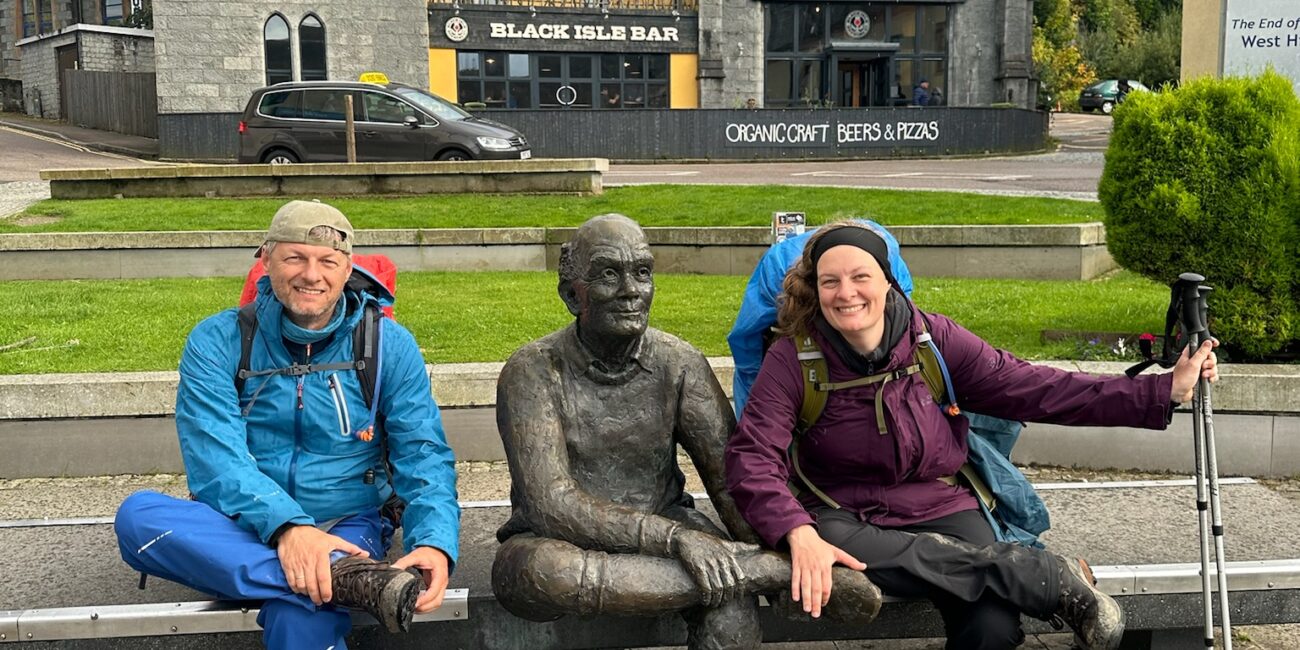 Doch das eigentliche Ende des West Highland Way wartete noch: die Statue des Mannes mit den wunden Füßen. Nachdem wir durch die Innenstadt geschlendert waren, gaben Papa und ich uns ein High Five – wir hatten es geschafft! Von Milngavie bis nach Fort William, ein unglaubliches und unvergessliches Erlebnis.