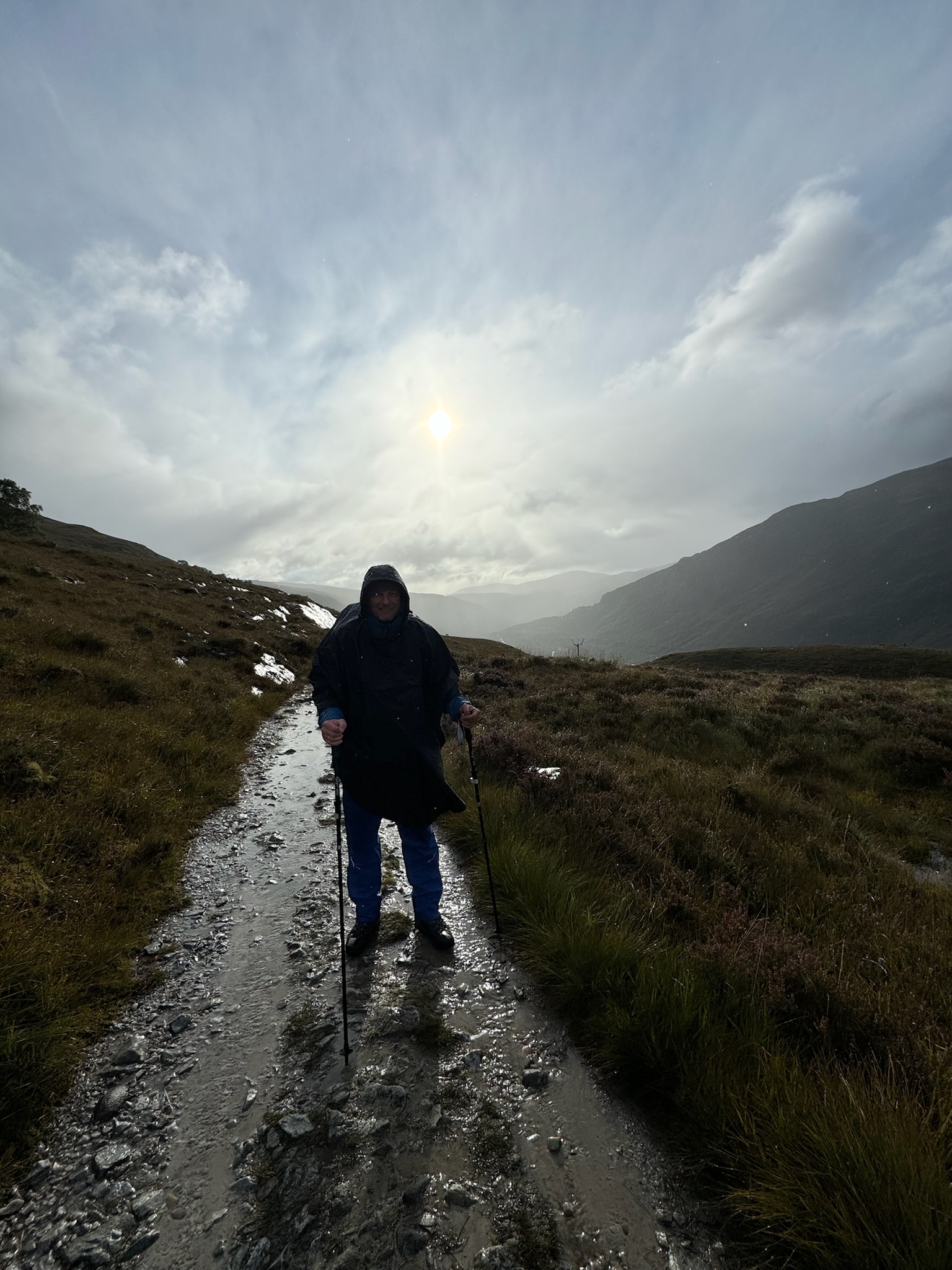 Doch die Freude währte nur kurz, denn bald darauf setzte wieder der Wechsel aus Starkregen und strahlendem Sonnenschein ein. Diese kurzen Sonnenphasen waren jedoch ein wahrer Segen, denn sie brachten nicht nur ein bisschen Wärme in unsere durchgefrorenen Knochen, sondern auch neuen Schwung in unsere Wandergeister. Snickers und Twix trugen ebenfalls zur Motivation bei – Papa und ich legten uns immer wieder kleine Etappenziele fest, an denen wir uns mit einem Riegel belohnen durften.